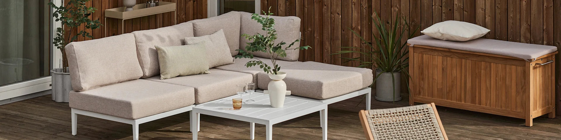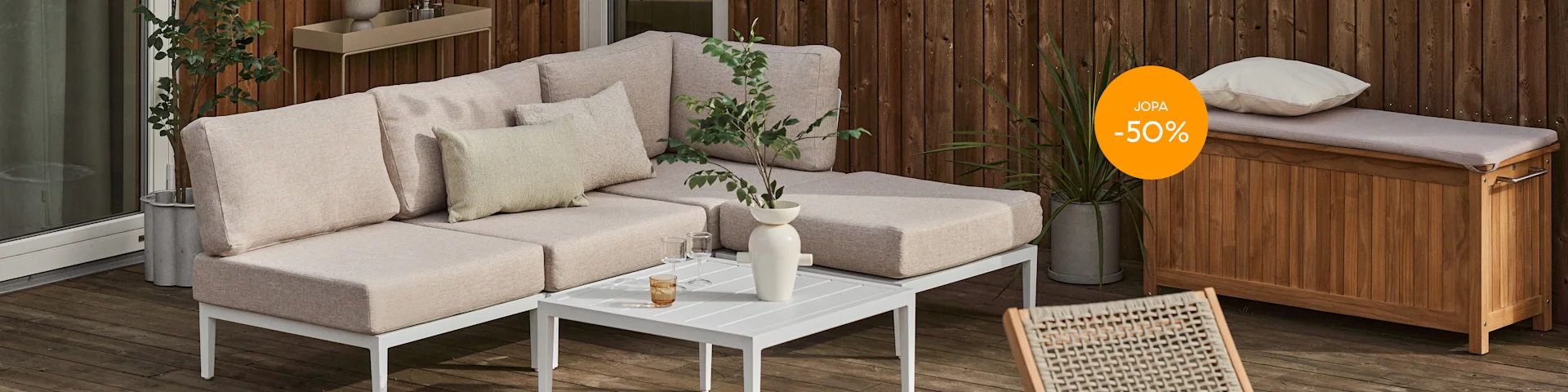 Lämpötilan nousu ja vihreys tarkoittavat, että on aika koristella terassi! Tähän olemme keränneet inspiraatiota terasseista niille, jotka haluavat olla ulkona yhtä paljon kuin sisällä ja luoda viihtyisän terassin. Löydä tyylikkäät puutarhapöydät ja -tuolit, tyylikkäät kannettavat valaisimet kesäiltojen piristykseksi ja käytännölliset muovimatot viihtyisää terassia varten.