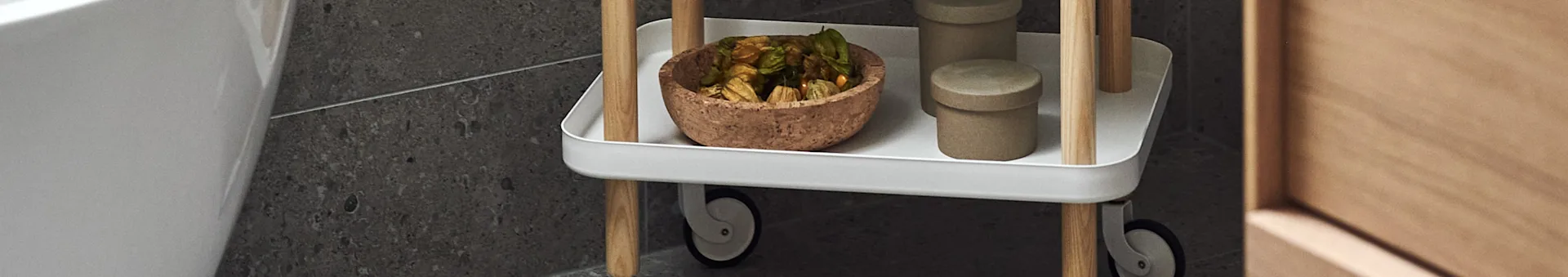 Pyörillä varustetut tarjoilupöydät ovat käteviä pöytiä, jotka voidaan helposti sijoittaa sinne, missä tarvitset lisää säilytystilaa, olipa se sitten käytävällä, lastenhuoneessa tai keittiössä. Tarjoiluvaunu on täydellinen lisävaruste ruokapöydän äärellä ja tekee ruokien tarjoilusta helppoa vieraillesi ilman, että tarjoiluastiat vievät tilaa pöydältä. Baarivaunu karahveineen ja laseineen täydentää kotibaarisi ja auttaa luomaan oikeanlaisen tunnelman. Nordic Nestillä on laaja valikoima pyörillä varustettuja tarjoilupöytiä, palveluvaunuja ja baarivaunuja tunnetuilta ja suosituilta brändeiltä, kuten House Doctorilta, Muuto ja Normann Copenhagen.