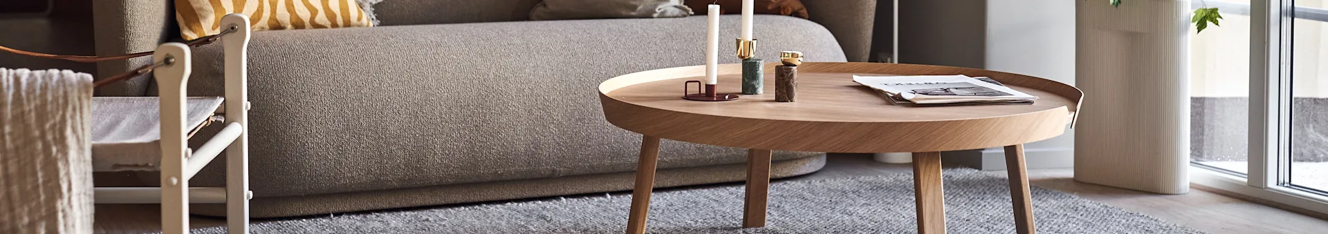 Tai jos haluat pohjoismaalaisempaa tyyliä, katso tanskalaisen Muuto-tuotemerkin Around-sarjan puiset sohvapöydät. Monen kokoisina ja korkuisina saatavilla oleva Around-sarja on tarjolla eri värivalikoimalla klassisesta mustavalkoisesta suuren määrän maanläheisiä rustiikkisia värisävyjä. Tai kohdista katseesi Menun Turning-sarjaan — upean muotoilun lisäksi saat paljon lisäsäilytystilaa. Pidä kaukosäätimesi, lehtesi tai mitä tahansa haluamaasi käsiesi ulottuvissa samalla kun pidät tilan järjestyksessä ja siistinä!