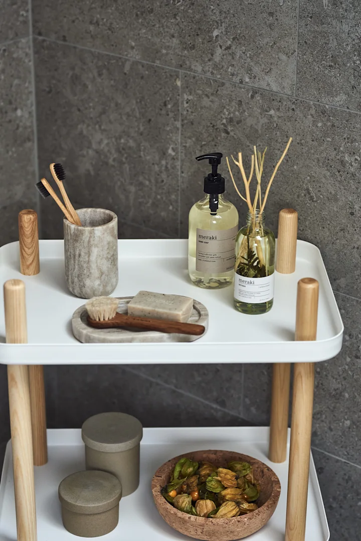 Pidä kylpyhuoneesi siistinä siistillä säilytyksellä, jotta luot rauhallisen ilmapiirin, jonka haluat saavuttaa viettäessäsi aikaa kylpyhuoneessasi. Kun säilytät esillä vain ne esineet, joita todella käytetään, kylpyhuoneesta tulee rentouttavampi ja harmonisempi paikka rentoutua - juuri niitä tunteita, joita saat kylpylässä.