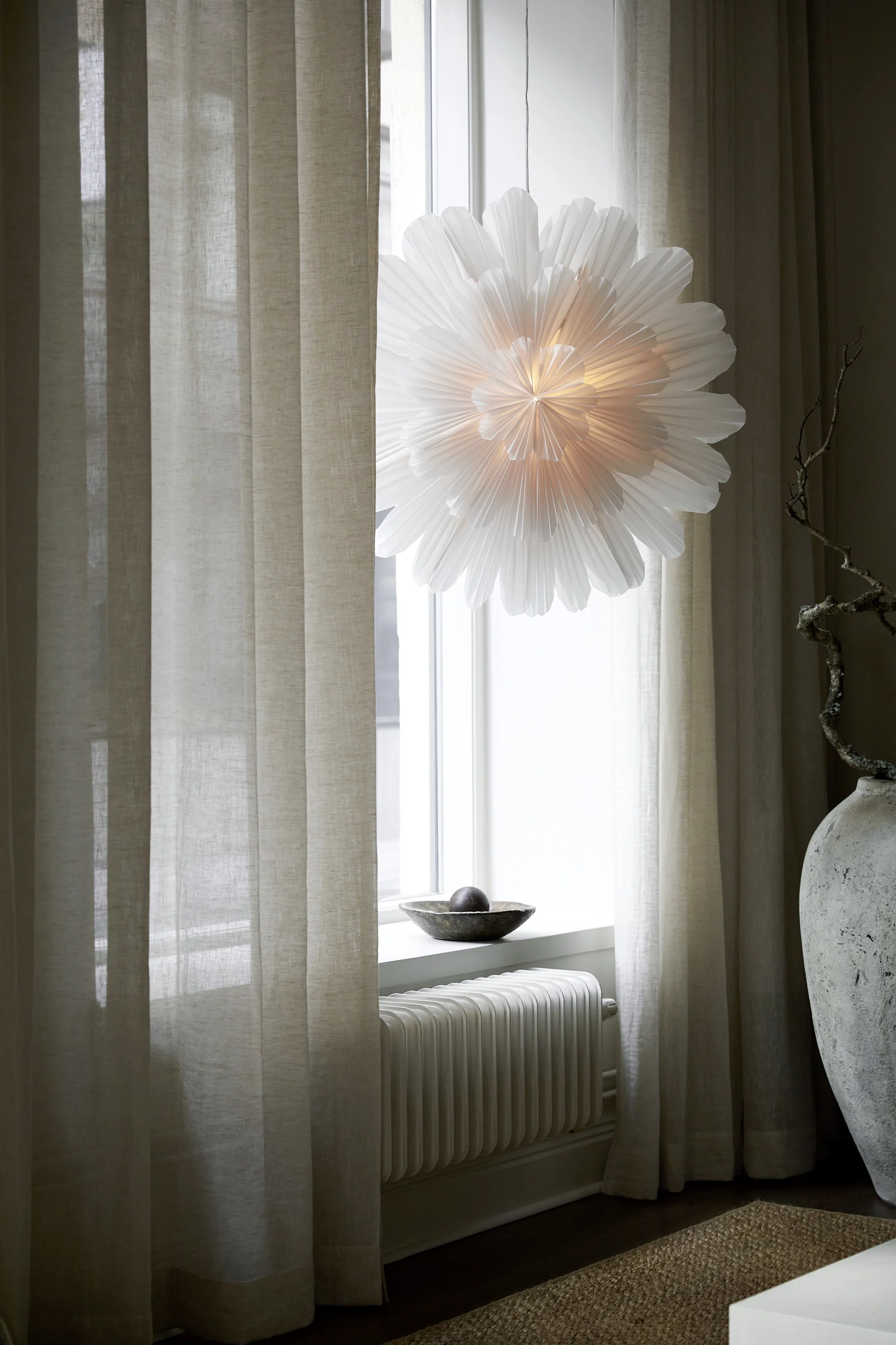 Taitetut paperiset joulutähdet pehmeissä harmaan ja valkoisen sävyissä vangitsevat arktisen ilman raikkauden olemuksen. Niiden selkeät linjat ja hillityt sävyt luovat täydellisesti kuratoidun talven ihmemaailman, joka on täynnä kauden taikaa. Ripusta ne ikkunaan heijastamaan ulkona olevaa huurteista maisemaa, ryhmittele ne yhteen lumisateen vaikutelman luomiseksi tai anna yhden tähden loistaa hiljaa sivupöydällä. Riippumatta siitä, miten ne tyylität, nämä joulutähdet tuovat yksinkertaisen ja elegantin tunnelman mihin tahansa huoneeseen.