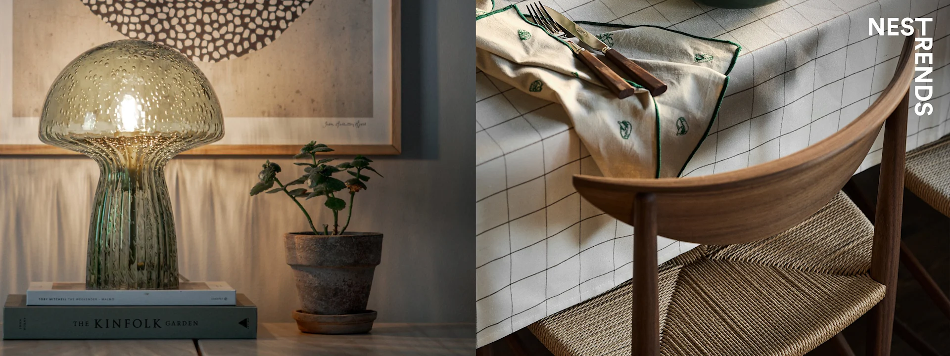 Grounding Maximalism trendissä luonto on keskiössä. Sienistä inspiroituneesta sisustuksesta kaareviin huonekaluihin jotka aaltoilevat tiensä ympäri huonetta tämä trendi tuo luonnon sisään. Tämä on hyvin kuratoitu maailma jossa tilpehööri tuntuu itsetehdyltä ja me ympäröimme itsemme kotona kasvatetuilla yrteillä ja mausteilla. Grounding Maximalism on mielikuvituksellinen, itsetehty ja persoonallinen.