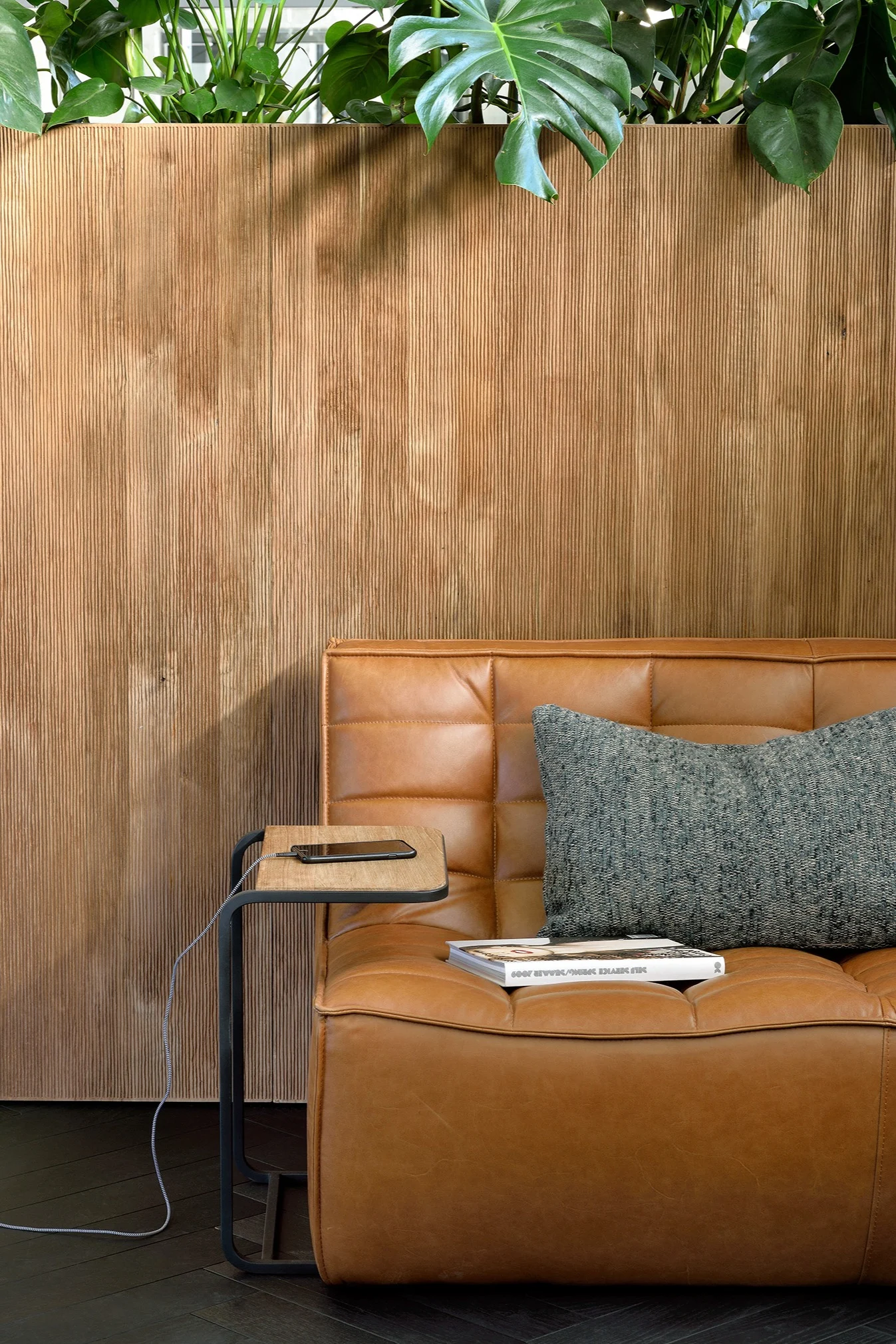 Nahka on avainasemassa Grounding Maximalism trendissä erityisesti istuimien osalta. Chrome näyttäytyy tässäkin trendissä tyylikkäiden rautalankakehyksisten huonekalujen ja säilytyksen muodossa. Kuvioidut villamatot ja pehmeät puuvillapeitot löytävät paikkansa puisten ja herkkien lasisten yksityiskohtien joukosta. Materiaalivalinta on luonnollinen itsetehdyllä otteella.