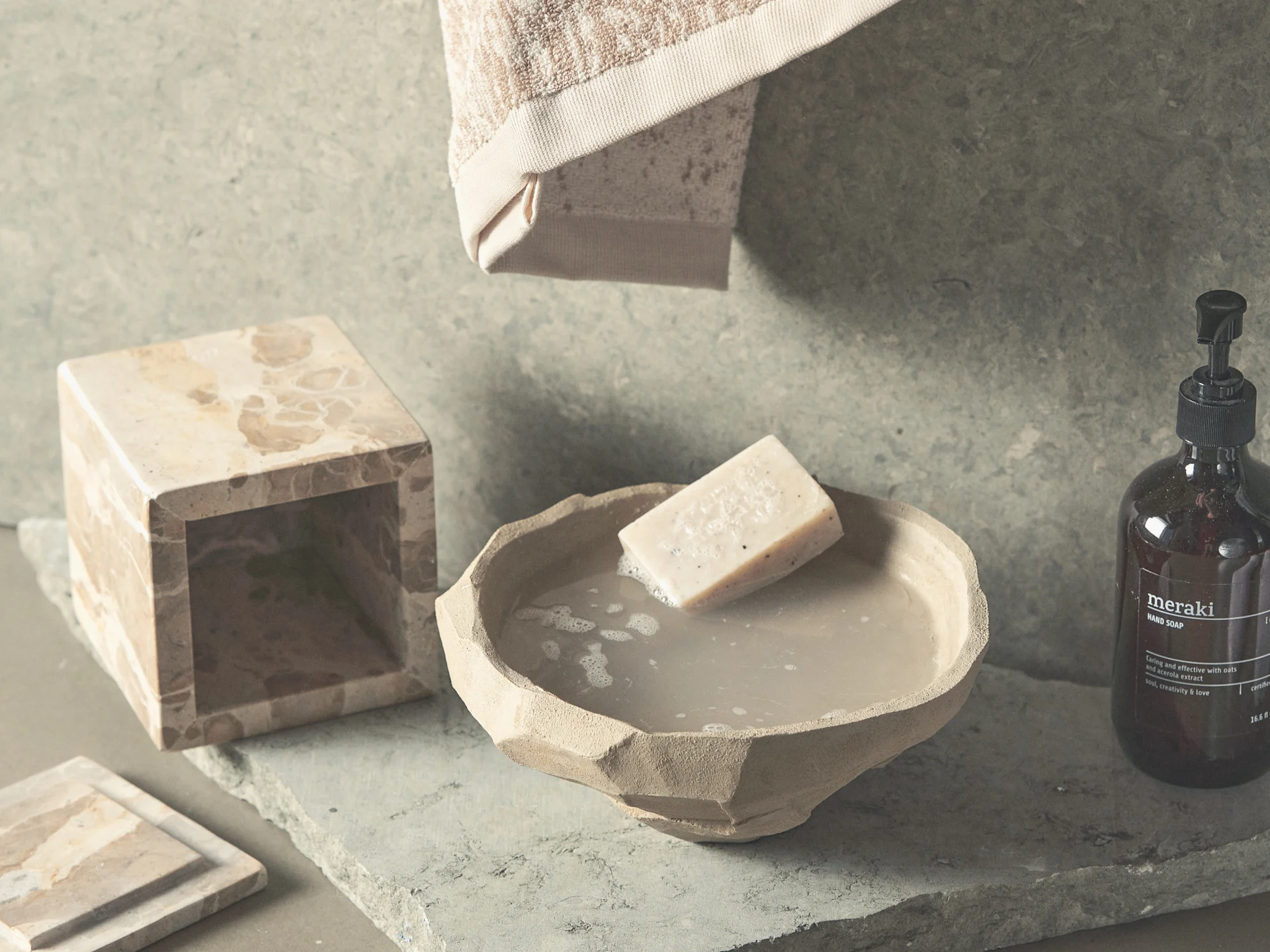 Seesteisyydessä haemme muotoilua, joka on täynnä rakennetta ja luonnollisia, neutraaleja sävyjä, joissa korostuvat lämpimät persikan ja viileät sinisen sävyt tuoden mieleen veden puhdistavat ominaisuudet. Seesteisyyden väripaletti on harmoninen ja maanläheinen ja siinä on mukana myös ruskeaa ja khakia.