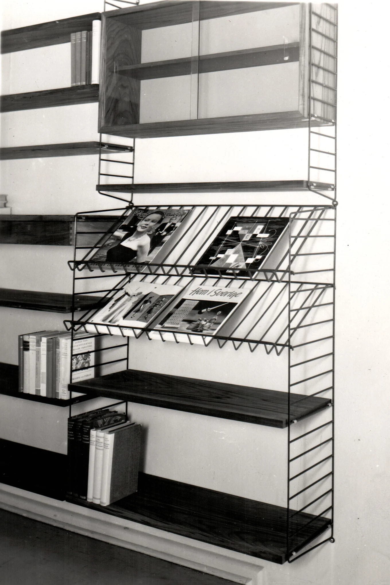 Tästä älykkäästä modulaarisesta järjestelmästä tuli nopeasti 1950- ja 60-luvun ruotsalaisten kotien peruskamaa, ja alle vuodessa oli myyty yli 40 000 seinäpaneelia - "huikea määrä 1950-luvulla", Bo huudahtaa. Vuonna 2004 Peter Erlandsson ja Pär Josefsson (Kajsa ja Nisse kutsuvat heitä hellästi "pojiksi") herättivät tuotemerkin henkiin lyhyen tuotantotauon jälkeen, ja nykyisin tuntemamme String Furniture syntyi.