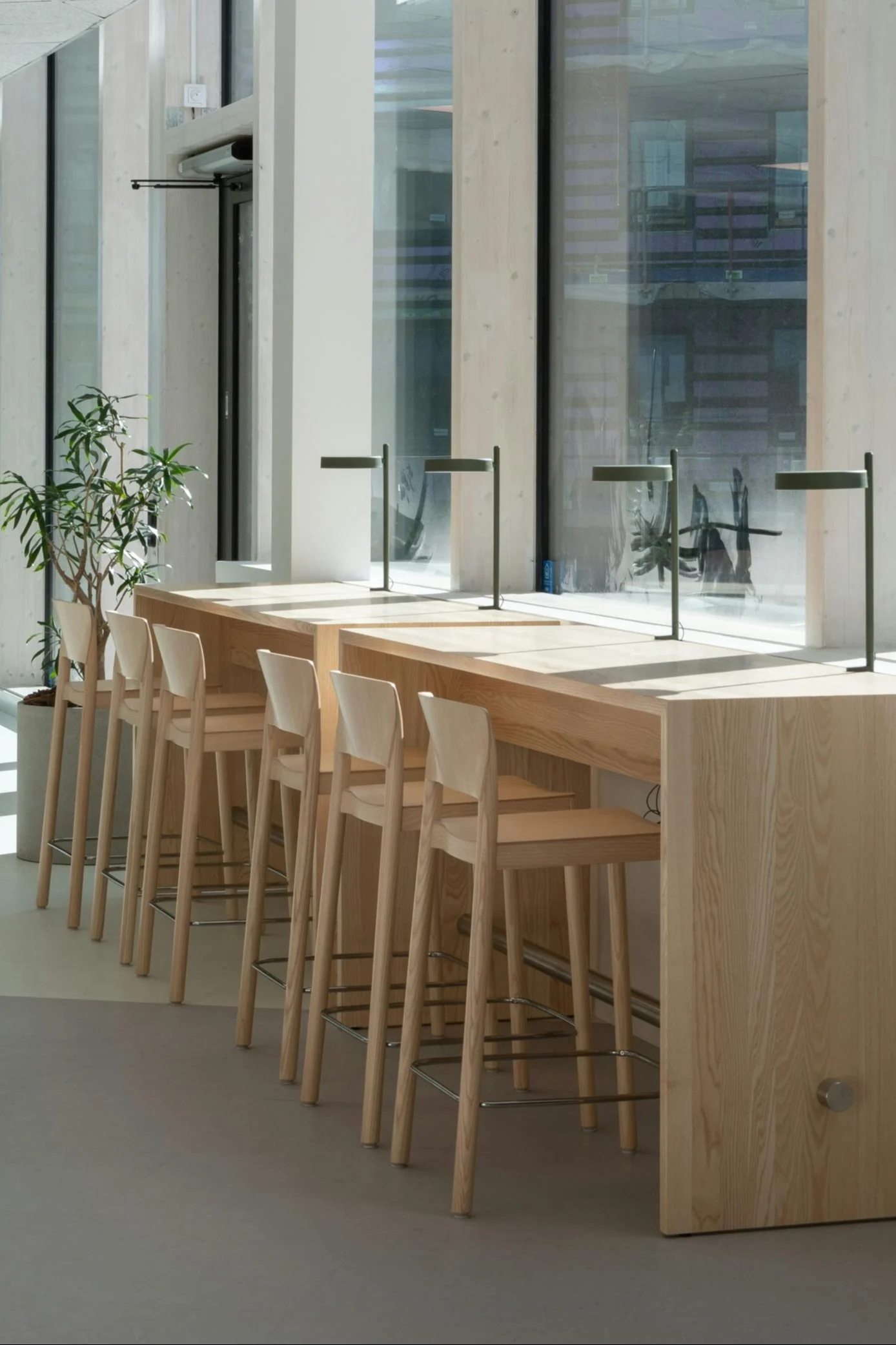 Lamino on valmistettu muotopuusta. ”Se tarkoittaa, että 19 eri osiin räätälöityä viilulevyä liimataan ja puristetaan yhteen muottityökalulla, kuumuuden ja suuren paineen avulla. Se pysyy muotissa lämmössä 3-5 minuuttia koosta ja paksuudesta riippuen.