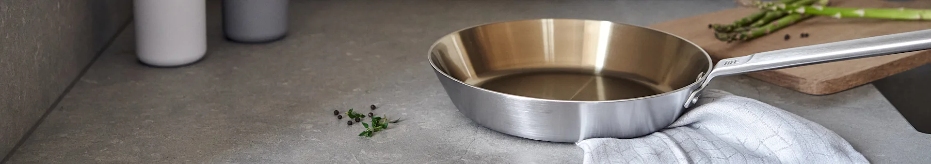 Ruostumaton teräs on tyylikäs ja käytännöllinen materiaali, joka on myös kestävä ja voi kestää korkeita lämpötiloja. Ne vaativat usein enemmän paistorasvaa, esimerkiksi verrattuna tarttumattomiin paistinpannuihin. Täydellisen karamellisoidun paistopinnan luomiseksi ruostumattomasta teräksestä valmistetut pannut ovat erinomainen valinta.