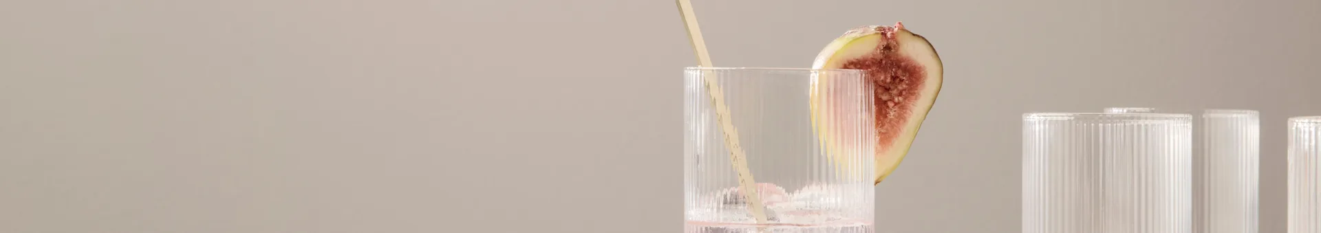 Ferm Livingin Ripple-pitkät drinkkilasit ovat ajaton klassikko suorilla linjoilla ja hienostuneella tyylillä. Uurrettuja highball-laseja on saatavilla käytännöllisinä lasisetteinä, jotka on valmistettu suupuhalletusta lasista.