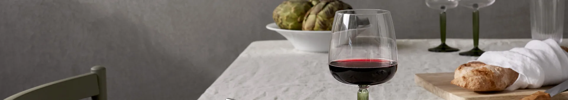 Iittalan Raami-sarjasta löydät punaviinilasit, jotka sopivat kaikenlaisille punaviineille ja jokaiseen tilaisuuteen. Viinilasien yksinkertainen muotoilu ja suorat linjat luovat rentouttavan tunnelman. Minimalistisesti muotoillut viinilasit jättävät enemmän tilaa itse juomalle ja pöydän ympärillä vallitsevalle tunnelmalle. Samankaltaisessa yksinkertaisessa tyylissä löydät viinilaseja Ferm Livingin Ripple-sarjasta.