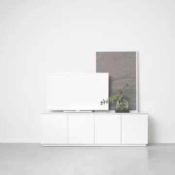 Beam sivupöytä A2:lta, suunniteltu Sara Larssonin toimesta, yhdistää toiminnallisuuden ja luonteen. Tämä huonekalu on uurrettu etu- ja sivuosistaan, mikä antaa sille ainutlaatuisen ilmeen. Kahdella kaapilla, neljällä ovella ja yhdellä hyllyllä se tarjoaa runsaasti säilytystilaa. Valitse väreistä valkoinen, vaaleanharmaa ja vihreä sekä jalat tammesta tai sokkeli. Carrara-marmoritason voi lisätä antamaan extraa.