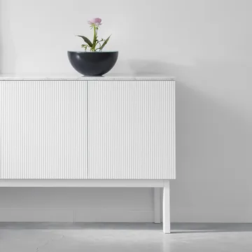 Beam sivupöytä A2:lta, suunniteltu Sara Larssonin toimesta, yhdistää toiminnallisuuden ja luonteen. Tämä huonekalu on uurrettu etu- ja sivuosistaan, mikä antaa sille ainutlaatuisen ilmeen. Kahdella kaapilla, neljällä ovella ja yhdellä hyllyllä se tarjoaa runsaasti säilytystilaa. Valitse väreistä valkoinen, vaaleanharmaa ja vihreä sekä jalat tammesta tai sokkeli. Carrara-marmoritason voi lisätä antamaan extraa.