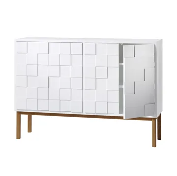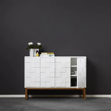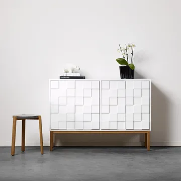 Collect kaappi 2010 matalat on matala kaappi, suunniteltu Sara Larssonin toimesta Collect-sarjaan, jossa yksinkertaisuus kohtaa leikkisän muodon. Valkolakattu pinta ja etulevyjen vaihteleva paksuus luovat kauniita tasonvaihteluita, jotka elävöittävät tilaa ottamatta siitä yli. Sopii täydellisesti säilytykseen olohuoneessa tai eteisessä, kun haluat piilottaa tavaroita ja samalla näyttää harkitun design-huonekalun. Vakaa rakenne ja älykäs sisäinen suunnittelu tekevät järjestämisestä helppoa — tyylikäs ja toimiva yksityiskohta kodin sisustuksessa