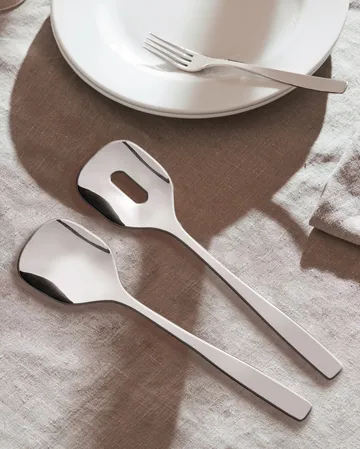 KnifeForkSpoon salaattisetti Alessielta on hieno lahja vastamoveeranneelle tai ylioppilaaksi valmistuneelle, tai voit sijoittaa tyylikkäisiin salaattiottimiin itse. Kestävä ruostumattomasta teräksestä valmistettu setti on ajaton ja säilyy tyylikkäänä vuosien ajan