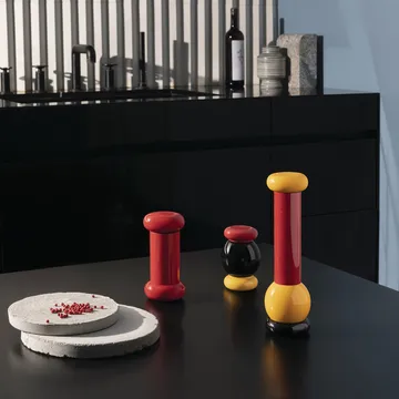 Twergi suola- ja pippurimylly 23 cm from Alessi on tyylikäs ja toimiva mylly, jonka on suunnitellut Ettore Sottsass Twergi-kokoelmaan. Lämmin puun tuntu ja selkeä graafinen siluetti tekevät siitä sekä käytännöllisen työkalun että koristeellisen yksityiskohdan keittiötasolle tai ruokapöytään. Säädettävä jauhatusaste tekee siitä monikäyttöisen hienosta ruokasuolasta karkeampaan pippuriin, ja tukeva rakenne takaa luotettavan suorituskyvyn päivittäisessä käytössä. Täydellinen lahja designista pitäville, jotka arvostavat toimivuutta arjessa