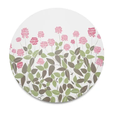 Ängsmark pannunalunen Arvidssons textililtä on valmistettu FSC-sertifioidusta koivuvanerista ja siinä on Minmonan suunnittelema kuvio. Pyöreä pannunalunen on koristeltu apilakasveilla, mikä tekee siitä näyttävän yksityiskohdan katetulle pöydälle