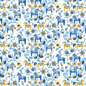 Dalahäst mini -kangas Arvidssons Textililtä on väripläjäys, joka saa kenet tahansa iloiseksi. Kangas on Carola Bengtsson-Malmströmin suunnittelema, ja siinä on taalainmaahevonen-kuosi, joka on hyvin tunnettu Ruotsissa. Taalainmaanhevonen on puinen hahmo Pohjois-Ruotsista ja se on saatavan useissa eri väreissä. Käytä ihastuttavaa Dalahäst mini -kangasta tyynynpäällisiä, verhoja tai huonekalujen päällystämistä varten.