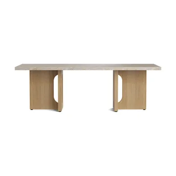 Androgyne Loungepöytä Audolta Copenhagenilta on elegantti ja veistoksellinen designpöytä, joka yhdistää arkkitehtonisen voiman pehmeisiin mittasuhteisiin. Danielle Siggerudin suunnittelulle on ominaista kontrasti tukevan jalustan ja ohuen pöytälevyn välillä, mikä antaa pöydälle harmonisen ja samalla voimakkaan ilmeen. Monikäyttöinen muoto tekee Androgyne-pöydästä yhtä toimivan sohvapöytänä, loungepöytänä tai matalana penkkinä kauniille asetelmille. Androgyne Loungepöytä Audolta Copenhagenilta on ylistys tasapainolle ja skandinaaviselle yksinkertaisuudelle – pöytä, joka tuo tilaan luonnetta ja ajatonta eleganssia.