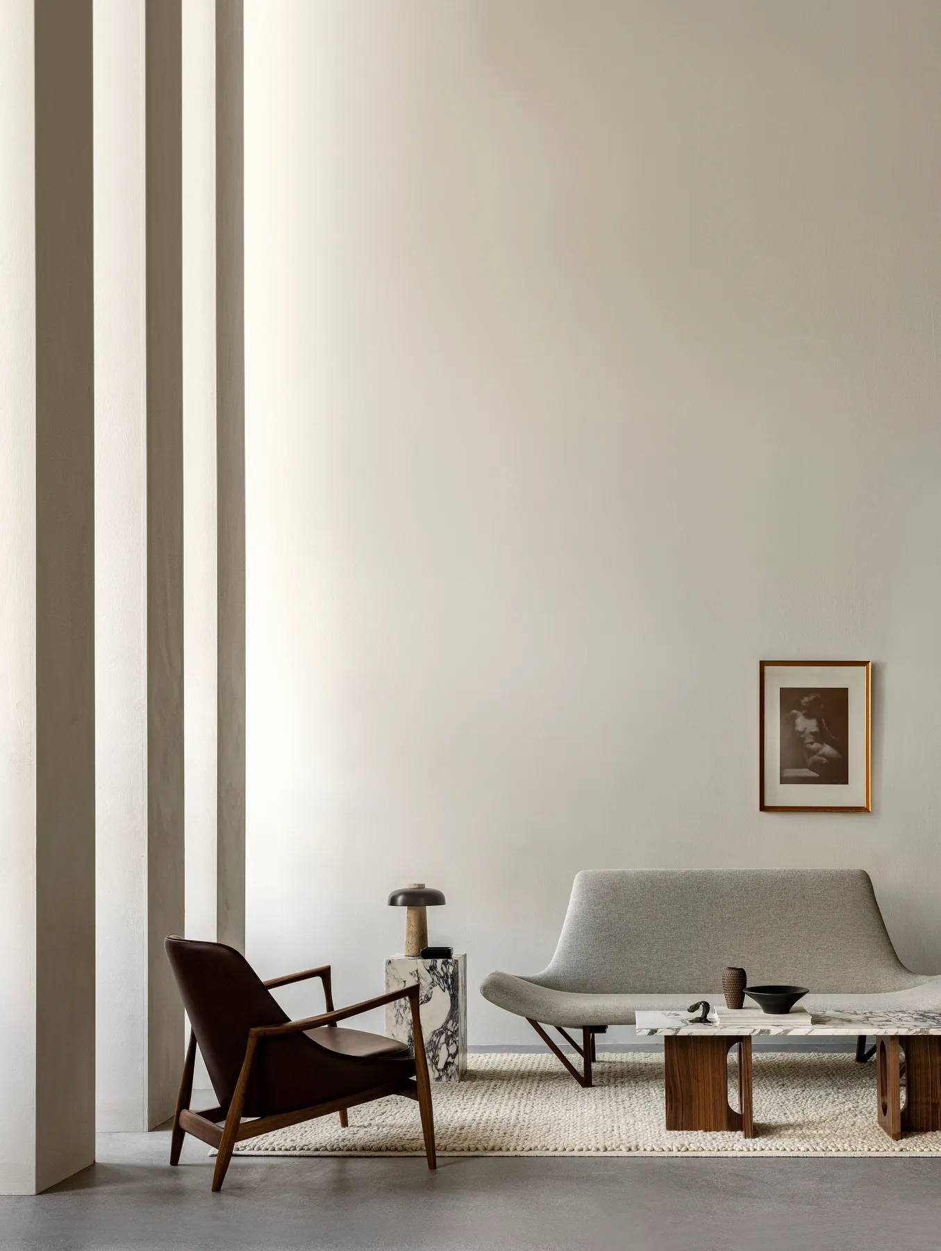 Androgyne Loungepöytä Audolta Copenhagenilta on elegantti ja veistoksellinen designpöytä, joka yhdistää arkkitehtonisen voiman pehmeisiin mittasuhteisiin. Danielle Siggerudin suunnittelulle on ominaista kontrasti tukevan jalustan ja ohuen pöytälevyn välillä, mikä antaa pöydälle harmonisen ja samalla voimakkaan ilmeen. Monikäyttöinen muoto tekee Androgyne-pöydästä yhtä toimivan sohvapöytänä, loungepöytänä tai matalana penkkinä kauniille asetelmille. Androgyne Loungepöytä Audolta Copenhagenilta on ylistys tasapainolle ja skandinaaviselle yksinkertaisuudelle – pöytä, joka tuo tilaan luonnetta ja ajatonta eleganssia.
