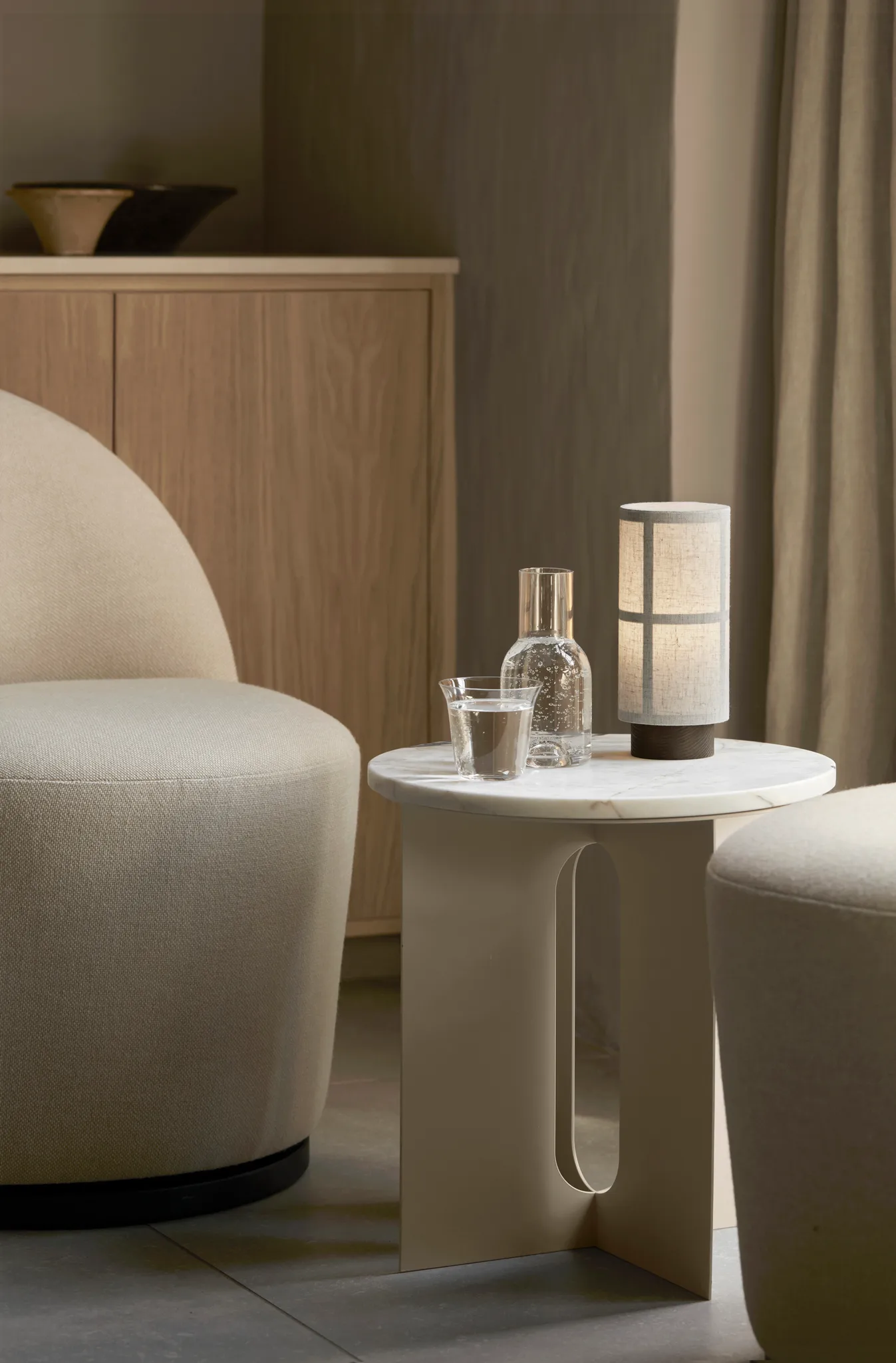 Androgyne sivupöytä Audo Copenhagenilta, suunniteltu Danielle Siggerudin toimesta, on upea lisä kotiin. Luonnollisten materiaalien yhdistelmän ansiosta pöytä tarjoaa vaikuttavan estetiikan, joka sulautuu useimpiin tiloihin. Täydellinen sekä olohuoneeseen että työhuoneeseen, tämä pöytä on ajaton huonekalu, joka tarjoaa sekä toimivuuden että eleganssin