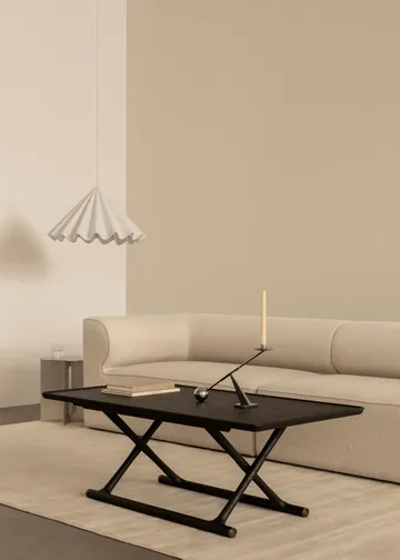 Dancing riippuvalaisin Ø65 cm Audo Copenhagenilta on valmistettu kierrätetyistä muovipulloista, joista on tehty varjosteen materiaali polyesterihuovasta, mikä tekee siitä erittäin ympäristöystävällisen. Lampun ilmeikäs muotoilu muistuttaa tanssijan hulmuavaa hametta ja antaa tilaan leikkisän ja elegantin vivahteen. Pehmeän, veistoksellisen muotonsa ansiosta Dancing riippuvalaisin on silmiinpistävä yksityiskohta ruokapöydän yllä tai olohuoneessa, jossa se levittää miellyttävää ja tunnelmallista valoa luoden kutsuvan ilmapiirin