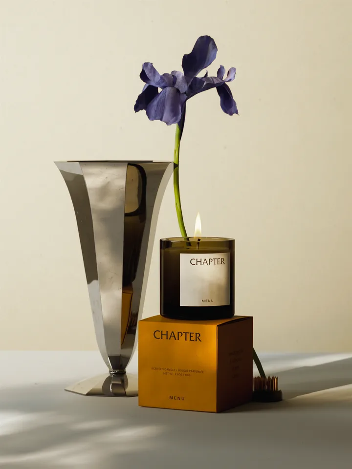 Olfacte tuoksukynttilä Chapter from tanskalainen Audo Copenhagenissa on tasapainoinen tuoksu hinoki-puusta, sitruunankuoresta ja kardemummasta. Tuoksukynttilä on sekä parabeeniton että ftalaatiton ja valmistettu kasvipohjaisesta vahasta ja luonnollisista öljyistä