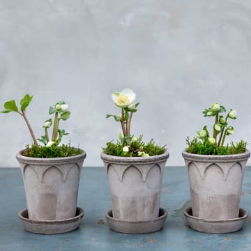 Elizabeth ruukku Ø 14 cm Bergs Potterilta on henkeä uhkuva ruukku, jonka koristelu luo majesteettisen ilmeen sen pelkistetystä muotoilusta huolimatta. Kuningatar Elizabeth istui valtaistuimella yli puoli vuosisataa, ja tämä ruukku on kunnianosoitus hänelle ja kaikille muille naisille, jotka päivittäin ovat oman elämänsä kuningattaria. Ruukun elegantti reliefikuvio symboloi ylösalaisin olevaa kruunua ja näyttää kauniilta ikkunassa tai senkissä