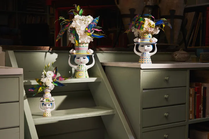 Lady with hat vaasi K20,5 cm Bjørn Wiinbladin valmistama keramiikkavaasi, joka on koristeltu käsin maalatuin yksityiskohdin. Keramiikkavaasi on saanut inspiraationsa Wiinbladin rakkaudesta hatullisiin figuureihin, mikä näkyy sen leikkisässä ja luovassa muotoilussa. Hameen selkeät linjat luovat kauniin kontrastin hatun pyöreille muodoille. VaasI sopii erinomaisesti kukkakimppuihin ja tuo mielikuvituksellisuutta kodin sisustukseen
