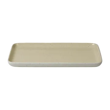Sablo lautanen 15x21 cm saksalaiselta blomukselta on suorakaiteen muotoinen lautanen, joka luo innovatiivisen ja ylellisen kattauksen. Lautanen on valmistettu kivitavarasta, joka on muotoutunut korkeissa lämpötiloissa, mikä antaa lautaselle korkean kestävyyden. Astiaston osa on osittain lasitettu ja muotoilu muistuttaa hiekkaa pitkin virtaavaa vettä, mistä suunnittelija Frederike Martens on saanut inspiraationsa
