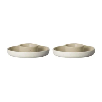 Sablo munakuppi Ø 10 cm 2-pakkaus Blomukselta on kaksi lautasellista munakuppia, joissa on matta ulkopinta ja kiiltävä sisäpinta. Keraamisten munakuppien valmistusprosessin ansiosta niihin muodostuu ainutlaatuinen ilme näyttävine pilkuineen. Munakupit on suunnitellut Fredrike Martens ja ne sopivat yhdistettäväksi Sablo-sarjan muihin osiin yhtenäiseen kattaukseen