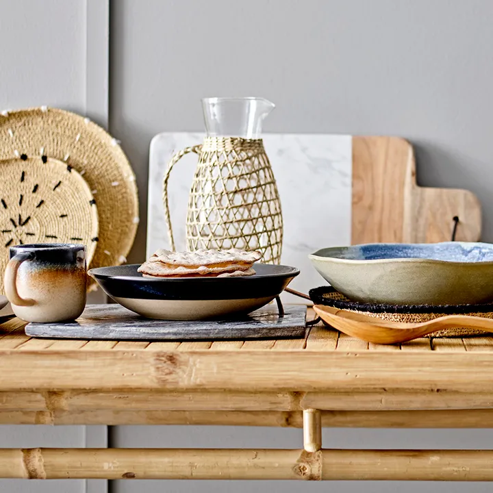 Bloomingvillen Daphne-kannu 0,86 l on tarjoilukannu, jossa on koristeellinen kuori meriheinasta. Punottu kahva tekee juoman tarjoilusta helppoa