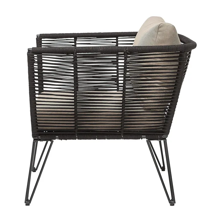 Mundo lounge -nojatuoli tanskalaiselta merkiltä Bloomingville on lounge-nojatuoli, joka on valmistettu jauhemaalatusta teräksestä polyesterinaruilla, jotka on käsin kudottu rungon ympärille ja mukavalla tyynyllä. Mundo on sarja, joka tarjoaa rustiikkisen ylellisen tuntuman, ja kohottaa ulkotilat seuraavalle tasolle. Yhdistä lisäosiin ja anna istuinryhmän tulla luontaiseksi paikaksi myöhäisiin kesäiltoihin ystävien seurassa.