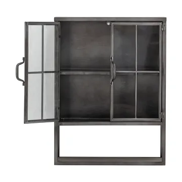 Sindre kaappi 46x21,5x61 cm Bloomingvillelta on teollinen tunnelma rautarungon ja lasin sekä näkyvien hitsaussaumojen ansiosta. Sen voi kiinnittää seinään tai sijoittaa lattialle, ja se toimii sekä säilytyksenä että koristeellisena esillepanona. Lakkaus antaa lisäsuojaa ja kaappi on ainutlaatuinen sisustuselementti