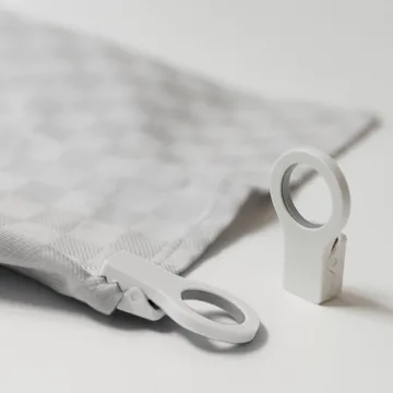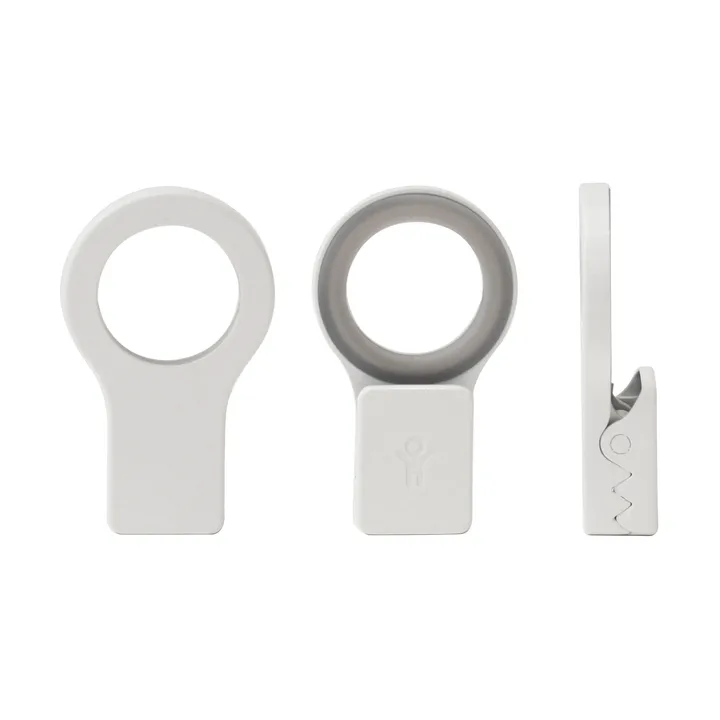 Bosign Loop klipsit keittiöpyyhkeelle 2-pack, suunniteltu Harald Hynellin toimesta, ovat koristeellisia ja käytännöllisiä ratkaisuja keittiöön. Nämä leikillistä muotoilua olevat klipsit, muistuttaen krokotiilin hampaita, pitävät pyyhkeen tukevasti. Ne ripustetaan helposti koukkuun, ja silikoninen tausta suojaa ja pitää ne vakaasti paikallaan. Täydelliset tuomaan keittiöön sekä toiminnallisuutta että viehätystä