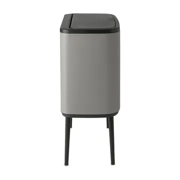 Bo touch bin 11+23 litraa on käytännöllinen ja tyylikkäästi muotoiltu jäteastia Brabantialta. Roskakori yhdistää modernin muotoilun ja käytännölliset toiminnot, ja siinä on runsaasti tilaa kahden säiliön ansiosta, mikä mahdollistaa jätteiden lajittelun. Astia on suunniteltu asetettavaksi seinää vasten tilan säästämiseksi, ja siinä on säädettävät jalat, joten se on tukeva myös epätasaisella alustalla. Kanssa on soft-touch-tekniikka, jonka ansiosta se avautuu kevyellä painalluksella. Tyhjennettäessä säiliöt on helppo nostaa ylös kummankin sivun käytännöllisistä pienistä kahvoista, ja astian korkeus estää kumartelun joka kerta tyhjennettäessä tai roskia heitettäessä. Suuri astia on täydellinen suurempaan kotitalouteen ja sitä on saatavana useissa upeissa väreissä valittavana