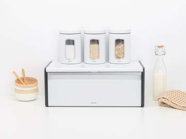 Fall Front leipälaatikko Brabantialta on tyylikäs ja tilava leipälaatikko, jonka ajaton muoto sopii kaikkiin keittiöihin. Fiksu rakenne tarjoaa helposti tilan kahdelle suurelle leivälle, ja tasainen yläosa toimii lisälaskutasona. Kannessa on magneettisuljin, joka pitää leivän tuoreena pidempään ja tekee arkisesta avaamisesta ja sulkemisesta kevyttä. Fall Front leipälaatikko Brabantialta yhdistää toiminnallisuuden, kestävyyden ja harkitun muotoilun – käytännöllinen lisä, joka tuo järjestystä ja harmoniaa keittiöön.