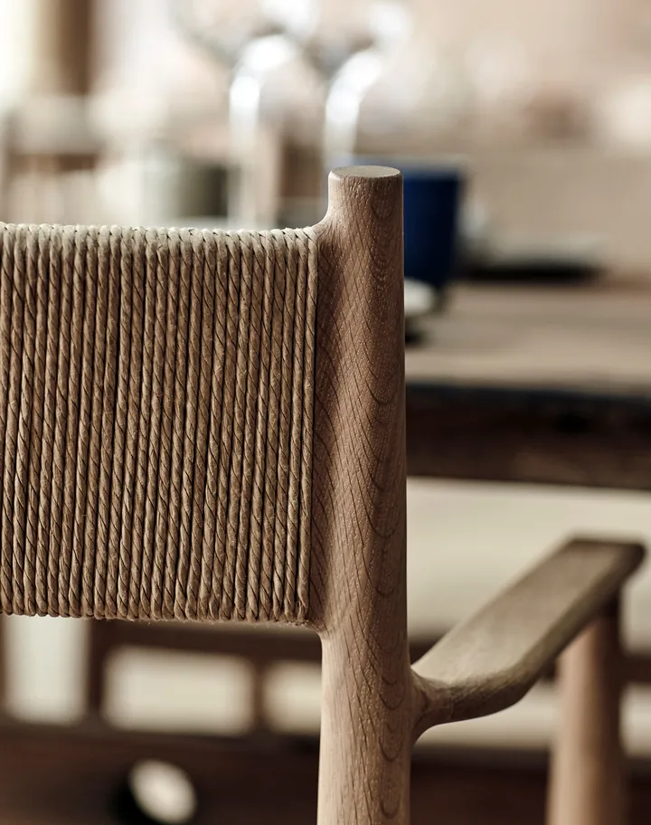 Arv tuoli kudottu istuin Brdr. Krügeriltä on kaunis, käsin kudottu istuin kestävästä paperinarusta. Tämä massiivipuinen tuoli heijastaa hyvin tanskalaisen muotoiluperinteen eleganssia ja ajattomia linjoja. David Thulstrup suunnitteli alun perin tuolin yhdessä Arv-sarjan muiden tuotteiden kanssa tunnetulle Noma-ravintolalle Kööpenhaminassa