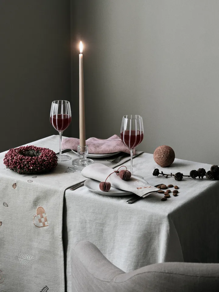 Fryd kangaslautasliina 45 x 45 cm 4 osaa tanskalaiselta Broste Copenhagenilta on puuvillasta valmistettu lautasliina, joka on koristeltu jouluteemaisilla kirjailuilla. Kauniit kangaslautasliinat luovat kodikkaan tunnelman ja saavat vieraasi tuntemaan olonsa hyvin huolitelluksi joulunajan illallisvierailuilla