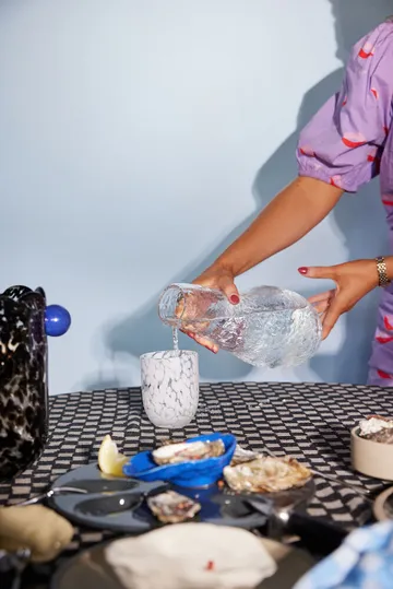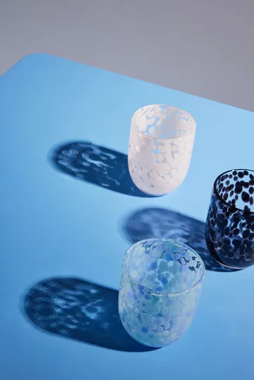 Messy lasi 30 cl 2-pack Byonilta on valmistettu käsin puhalletusta lasista, jossa leikkisä konfettikuvio. Täydelliset tarjoamaan drinkkejä, mehua, maitoa tai kahvia, mutta myös tuikkujen pidikkeeksi tai hammasharjalaseiksi. Käsintehdyt, yksilöllisillä väri- ja rakenne-erolla.