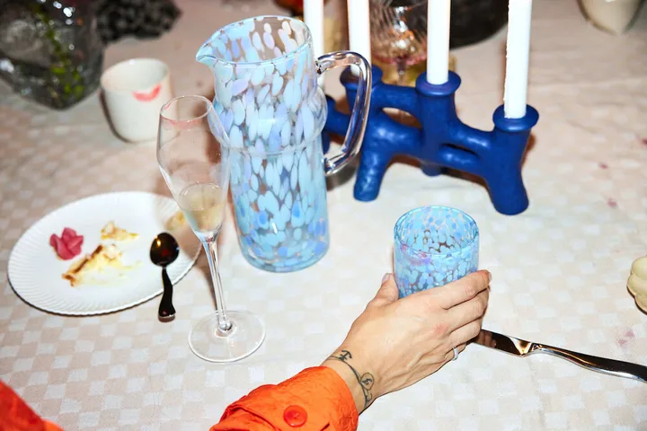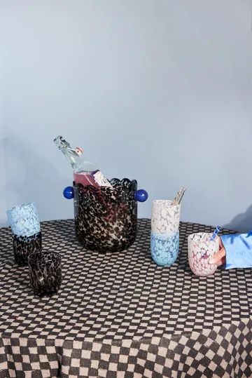 Messy lasi 30 cl 2-pack Byonilta on valmistettu käsin puhalletusta lasista, jossa leikkisä konfettikuvio. Täydelliset tarjoamaan drinkkejä, mehua, maitoa tai kahvia, mutta myös tuikkujen pidikkeeksi tai hammasharjalaseiksi. Käsintehdyt, yksilöllisillä väri- ja rakenne-erolla.