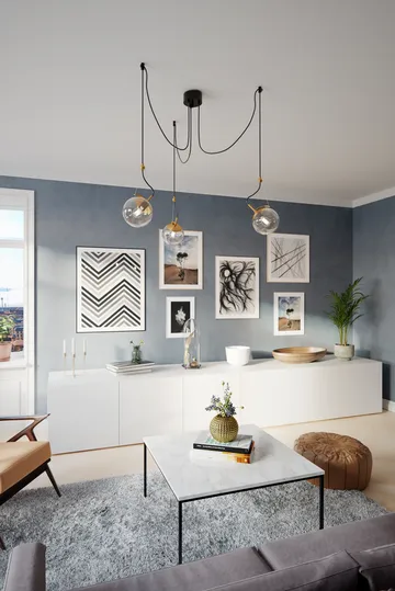 Carry-kattovalaisin By Rydénsiltä yhdistää tyylin ja toiminnallisuuden. Tekstiilipäällysteinen johto on säädettävissä tarpeidesi mukaan, ja lasipalloa voi suunnata sinne, missä valoa tarvitaan. Täydellinen sekä keittiösaarekkeelle että pienille pöydille.