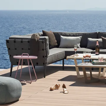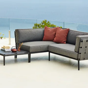 Conic moduulisohva Cane-linelta on joustava Foersom & Hiort-Lorenzenin suunnittelema moduulisohva, jonka avulla rakennat unelmiesi ulkotilan. Se koostuu kahdesta kulmaosasta ja yhdestä keskiosasta, joita voi yhdistellä tarpeen mukaan, mikä antaa runsaasti vapautta luoda kaikkea tilavasta sohvasta ilmavaan loungekokonaisuuteen. Cane-linen kestävä ulkokangas tekee siitä erinomaisen säänkestävän, ja Conic-mallistosta löytyy myös yhteensopiva lounge-nojatuoli, aurinkosänky ja sohvapöytä yhtenäiseen ja kutsuvaan ulkomiljööseen. Ajaton investointi leppoisille ulkoilupäiville