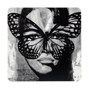 Golden Butterfly lasinalunen 9x9 cm., Black-white Carolina Gynning