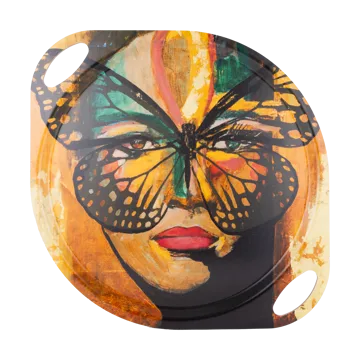 Golden Butterfly tarjotin kahvoilla 38x47 cm Carolina Gynningiltä on valmistettu 100 % koivusta ja huokuu sekä toiminnallisuutta että kauneutta. Tarjoilutarjottimessa on kaunis perhoskuvio ja käytännölliset kahvat, jotka tekevät tarjoilusta vaivatonta. Käytä sitä aamiaisella, kahvihetkessä tai jätä esille taiteelliseksi katseenvangitsijaksi kotiin