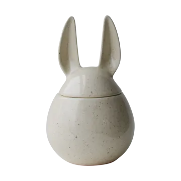 DBKD Eating rabbit kulho pieni on valmistettu keramiikasta ja sitä voidaan käyttää sekä pienten tavaroiden säilytysrasiana että tarjoilukulhona pääsiäisherkuille. Älykkään ja söpön kannen ansiosta herkut pysyvät tuoreina pidempään. Pehmeä ja minimalistinen siluetti, jossa on kaksi kaniininkorvaa, on moderni tulkinta klassisesta pääsiäispupusta ja toimii hurmaavana koristeena pöydällä tai ikkunalaudalla pääsiäisenä