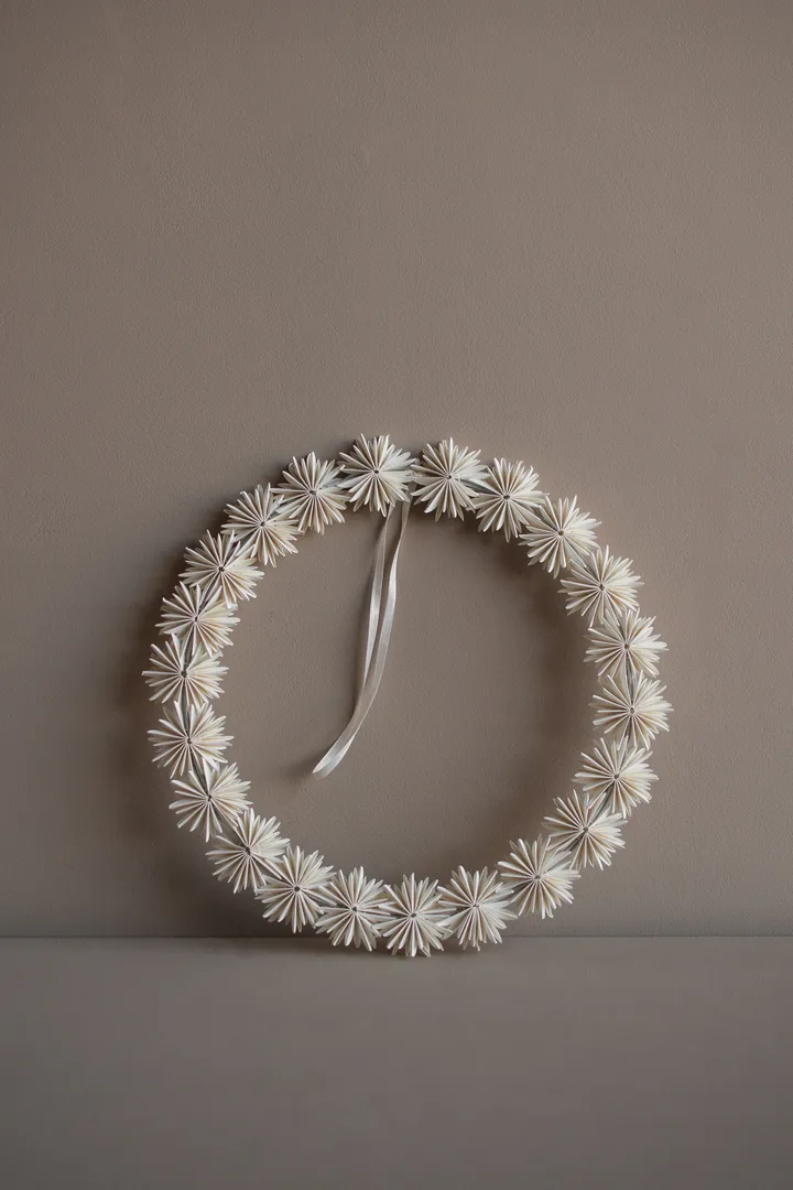 Paper flake kranssi joulukoriste DBKD:ltä on valmistettu paperista ja tarjoaa yksinkertaisen ja hienostuneen joulukoristeen. Kranssi kuuluu Paper-sarjaan ja sen on suunnitellut Karin Dahlin Gunterberg. Ripusta se suosikkipaikkaasi ja nauti sen viehätyksestä