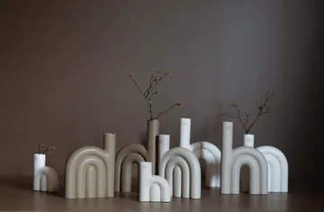 Rope maljakko large DBKD:ltä on veistoksellinen maljakko, jonka pehmeät, arkkitehtoniset muodot ammentavat inspiraationsa ovista ja kaarista. Antelias koko ja tasapainoinen siluetti luovat ilmeen, joka tuntuu yhtä aikaa kevyeltä ja voimakkaalta. Maljakko on yhtä kaunis sisustuselementtinä sellaisenaan kuin täytettynä oksilla tai runskaammilla kukkakimpuilla. Mattapinta ja pehmeästi kaartuvat linjat tuovat rauhallisen läsnäolon, joka sopii jokaiseen huoneeseen. Rope maljakko DBKD:ltä yhdistää skandinaavisen muotoilun, funktion ja estetiikan ajattomaan muotoon, joka nostaa kukka-asetelmat esiin vaivattomalla eleganssilla
