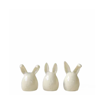 DBKD-tuotemerkin Triplets-pääsiäispuput tulevat 3-pakkauksena suloisia keramiikkakoristeita. Kolmen pääsiäispupun pehmeä ja minimalistinen siluetti korostuu kahdella taitetulla pupunkorvalla, joka on moderni tulkinta klassisesta pääsiäispupusta. Hurmaavat koristeet sopivat kauniisti pöydälle, lipaston päälle tai ikkunalaudalle pääsiäisenä.