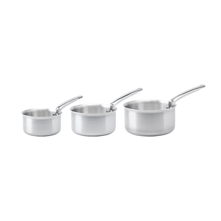 de Buyer Alchimy kattilasetti 3 osaa on täydellinen sekä kotikokeille että ammattilaisille. Valmistettu paksusta, monikerroksisesta ruostumattomasta teräksestä, joka tarjoaa tasaisen ja hallitun lämmönjakautumisen. Setti on yhteensopiva kaikkien lämmönlähteiden kanssa, mukaan lukien induktio ja uuni jopa 200°C. Vankka rakenne ergonomisilla kahvoilla, jotka pysyvät viileinä ja ovat turvallisesti kiinni niiteillä. Sisäänrakennetut tilavuusmerkinnät helppoa käyttöä varten. Astianpesukoneenkestäviä, nämä paistinpannut ja kattilat ovat käytännöllisiä ja luotettavia. Käsintehty Ranskassa kestävyys ja laatu mielessä pitäen