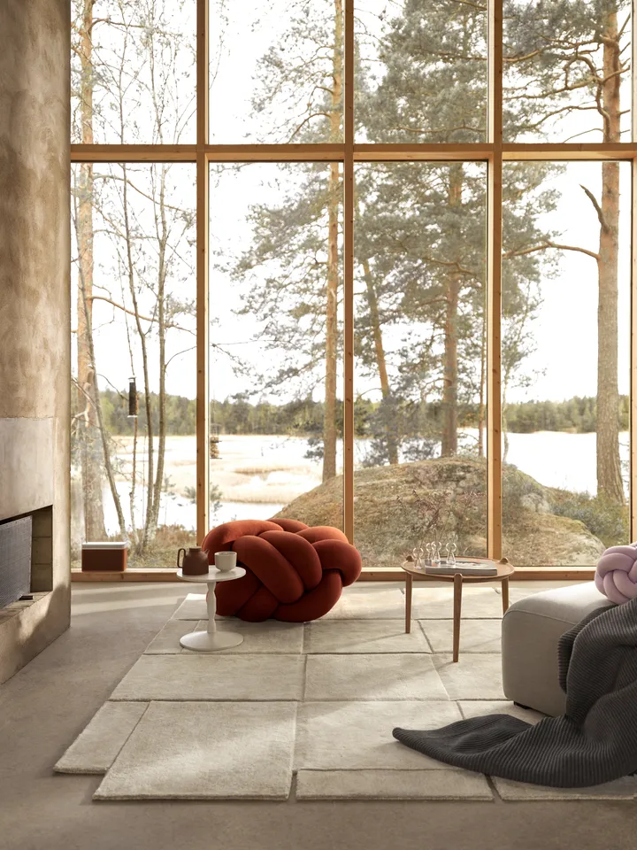 Knot tyyny XL merkiltä Design House Stockholm on leikkisä muotoilultaan solmun muodossa ja sen reilun koon ansiosta sitä voidaan käyttää istuinpuffina. Islantilainen muotoilija Ragnheiður Ösp Sigurðardóttir on luonut tiiviin solmun sitomalla yhteen pitkän neulotun putken, joka on yhtä mukava kuin kaunis. Knot tyyny on saatavilla useissa eri väreissä.