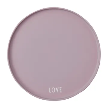 Design Letters suosikkilautanen Ø22 cm on pyöreä jälkiruokalautanen mattavalkoisesta luukeramiikasta, jossa on tervetulleeksi kaiverrettu sana arkkitehti Arne Jacobsenin tunnetusta kirjasintyypistä. Suosikkilautasta voi yhdistellä muiden saman merkin luukeramiikkatuotteiden kanssa eläväisen kattauksen luomiseksi